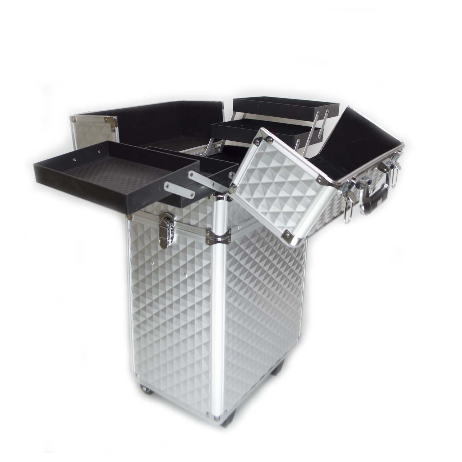 Maleta profesional para maquillaje con diseño práctico y resistente. Cuenta con varias divisiones y compartimientos, ideales para organizar y almacenar todo tipo de productos y herramientas de trabajo.